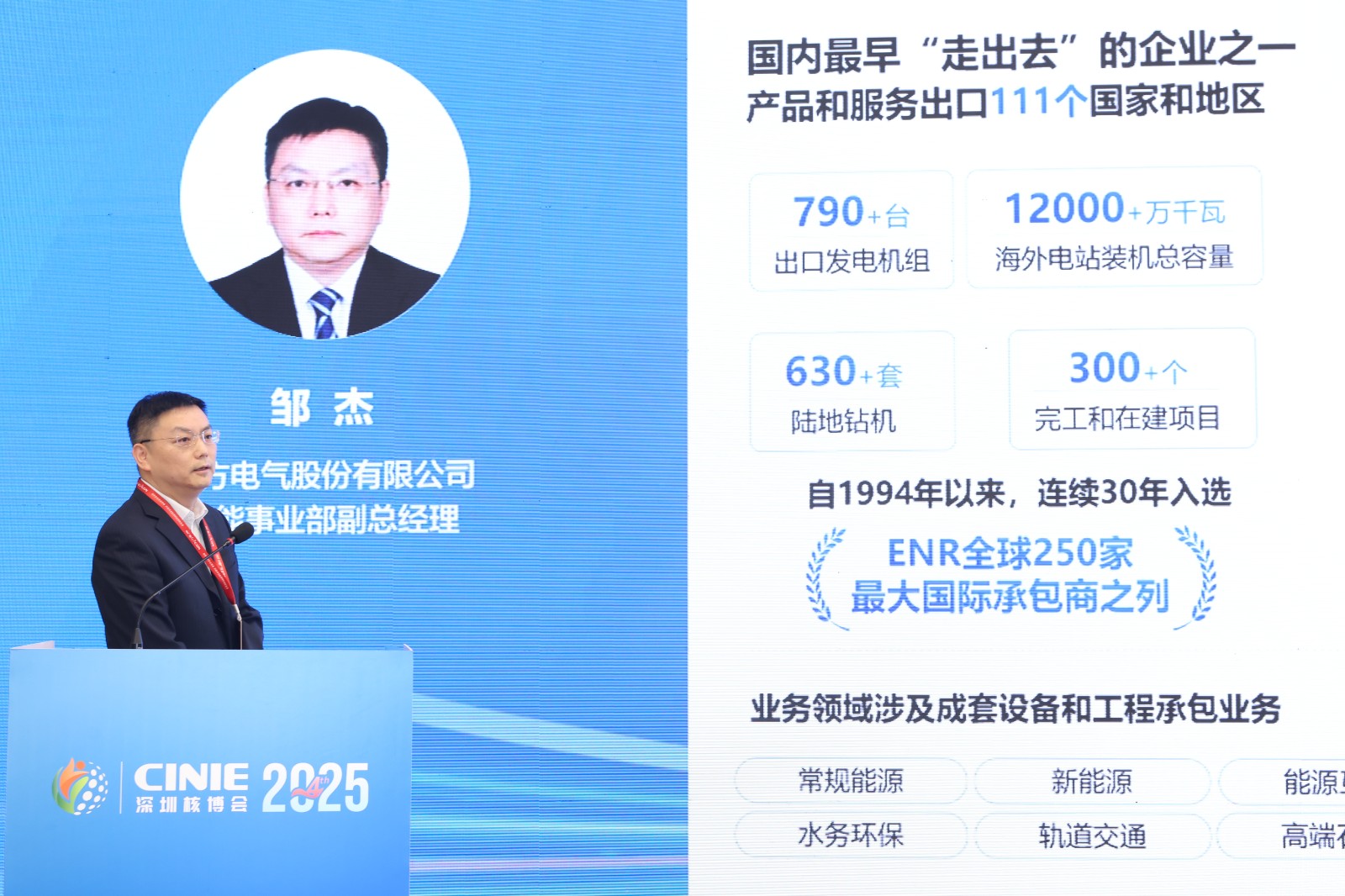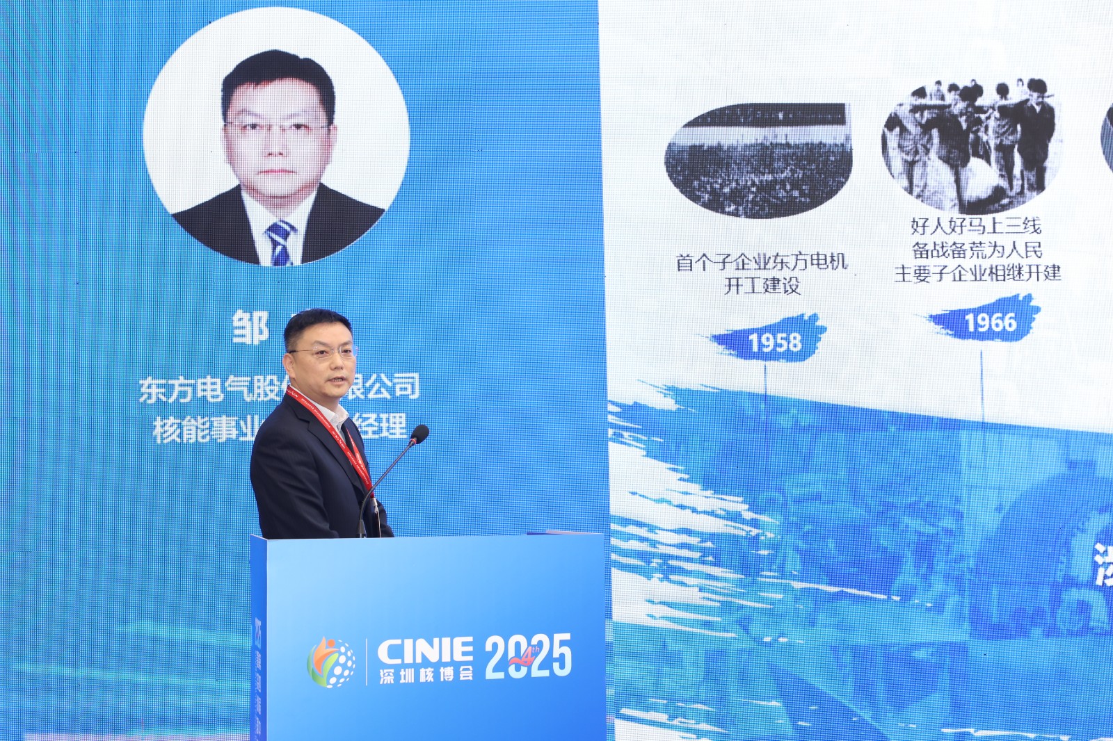 2025年11月13日,东方电气股份有限公司核能事业部副总经理邹杰在深圳核博会核电先进装备与产业链论坛发表《数智化附能核电装备高质量发展》主旨报告。