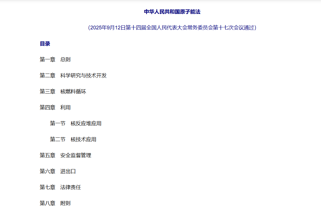 中国核工业71周年之际 《中华人民共和国原子能法》今日实施